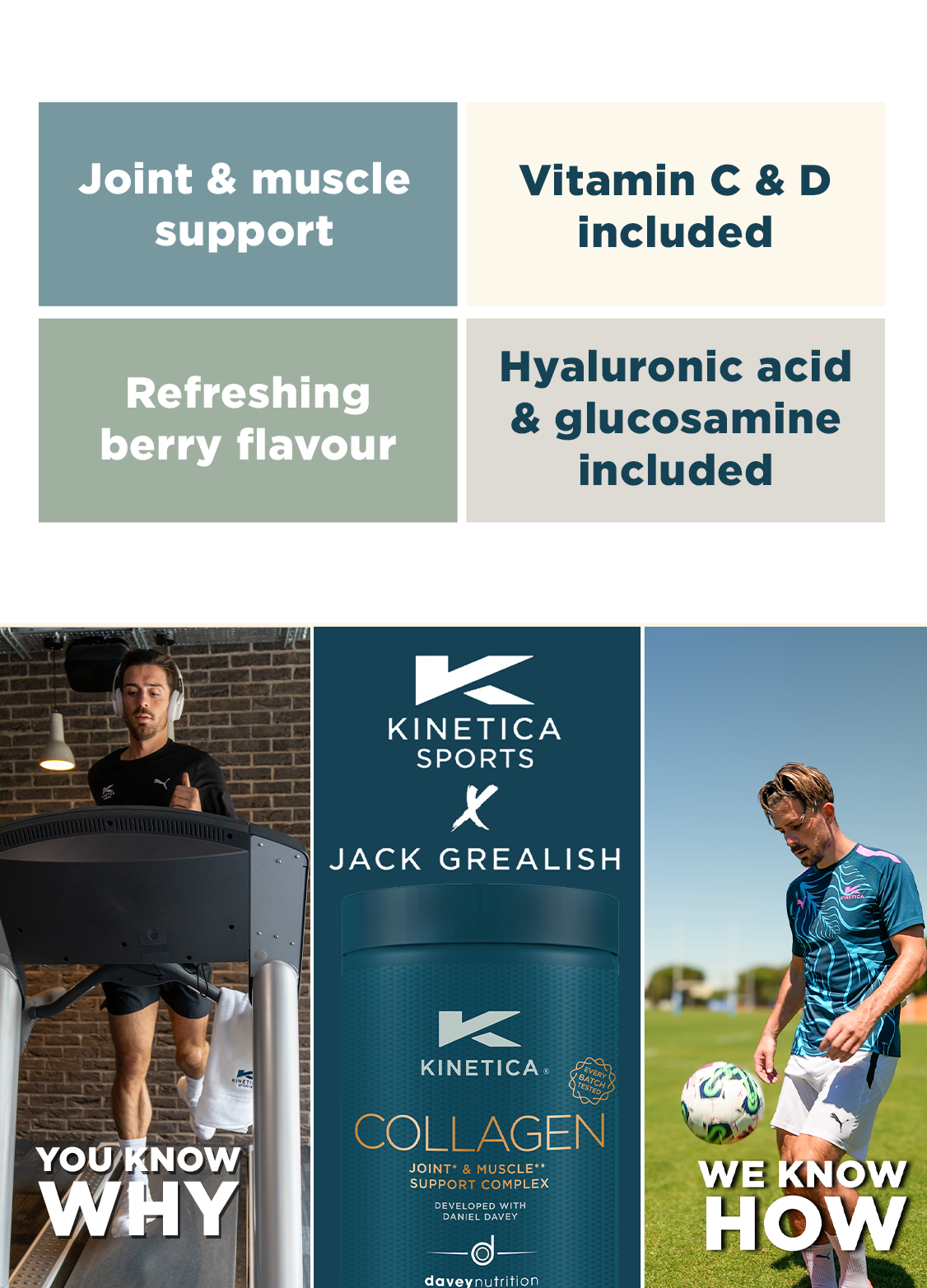 Kinetica Sports Collagen Powder Joint* & Muscle** Support Complex was developed in partnership with leading Performance Nutritionist Daniel Davey, who has over a decade of experience working with elite athletes and sports teams.
