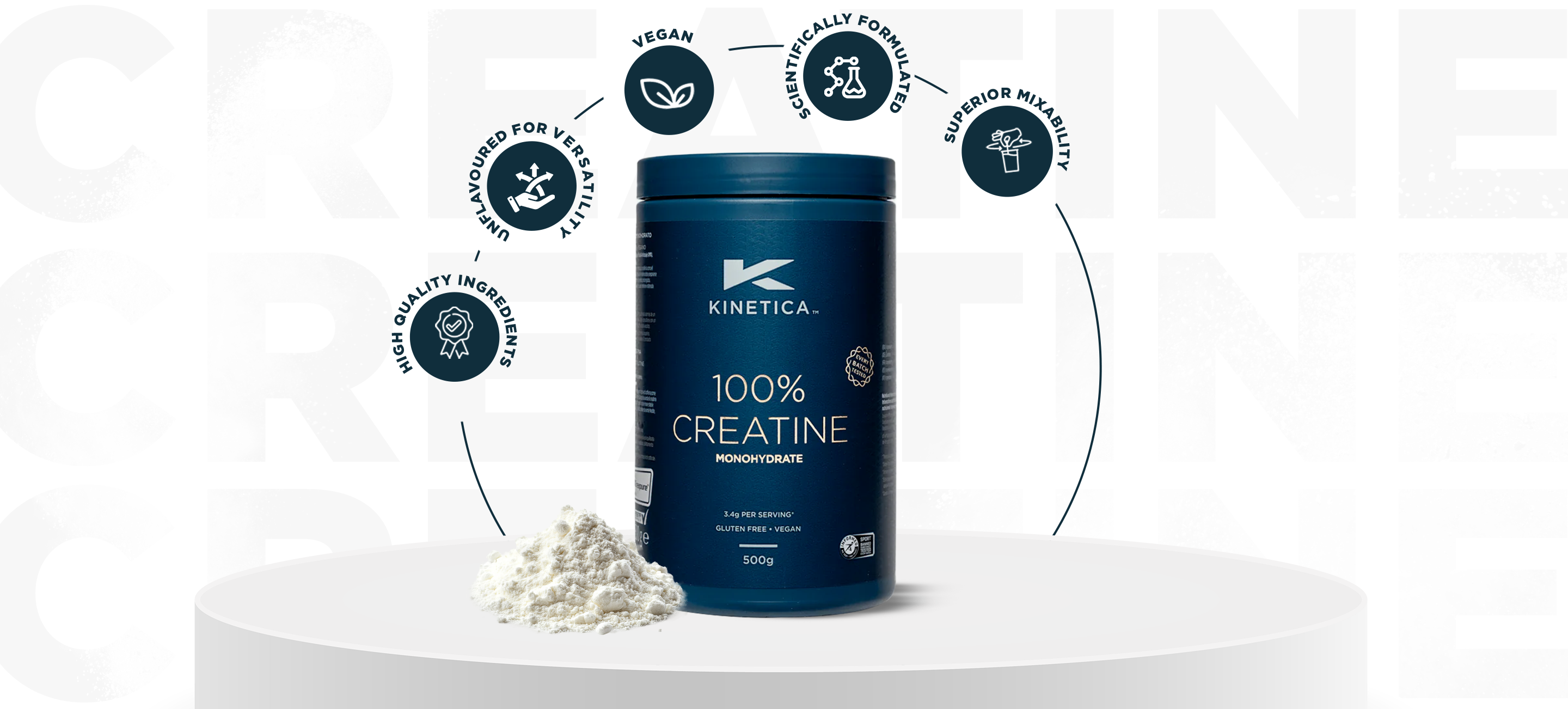More reps, more speed, and more strength. If this is what your workout sessions require, our Kinetica Sports Creatine Monohydrate Powder is the supplement you need to step up. Offering the purest, most trusted form of Creatine, this high-performing fuel is designed for high-intensity performance, explosive power, and rapid recovery.
