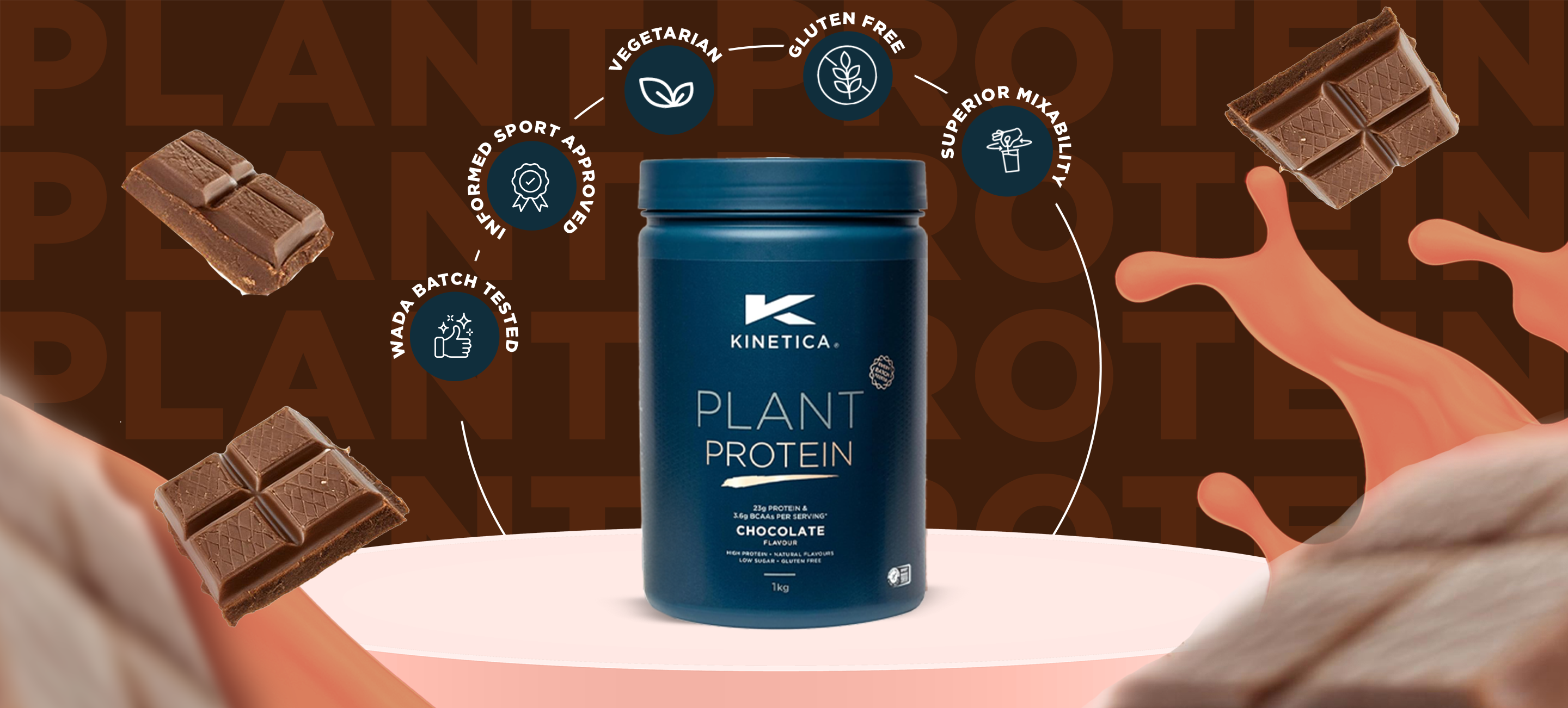 Here's a vegan protein that tastes as good as it delivers! Our Kinetica Sports Plant Protein delivers a rich & indulgent chocolate flavour and 23 grams of plant-based protein per serve. Packed with a dairy-free blend of rice and pea protein, this chocolate plant protein powder is your go-to for muscle recovery, muscle support or simply feeling good.